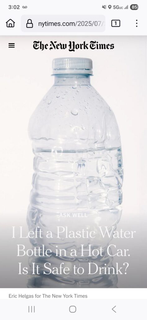 If the water bottle has made it to a drinkable form, first you would have to get it into a vessel of sort, metal or glass recommended. First sip would burn your mouth, tongue, and throat if it made it that far. Using a straw (metal, not plastic) will not help.